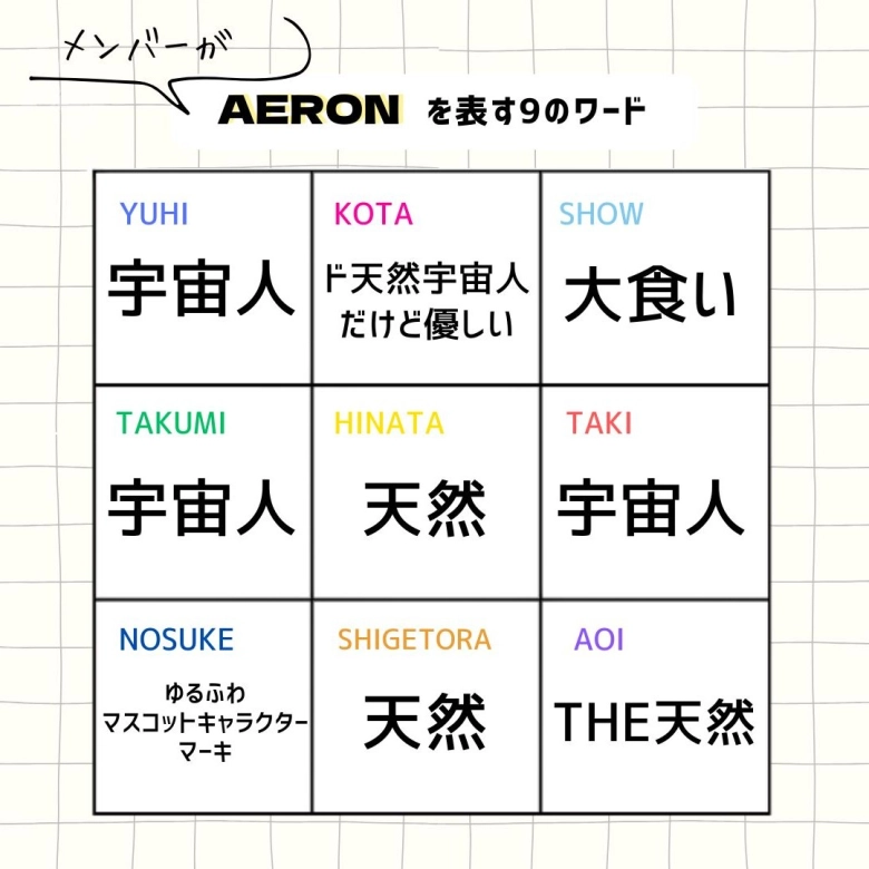 YUHI「AERONは天然って書きたかったんですけど、天然を超えているので宇宙人にしました。話が通じないことが、1日に5~6回はあるんですよ」