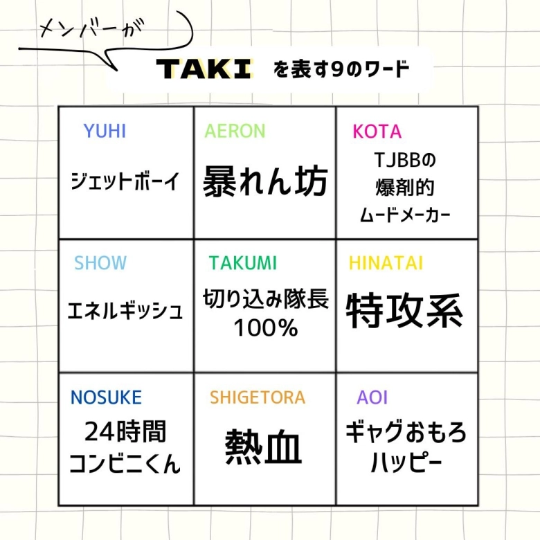 YUHI「TAKIは、グループの火付け役というか起爆剤。だから勝手にこのグループのジェットボーイだと思っています」