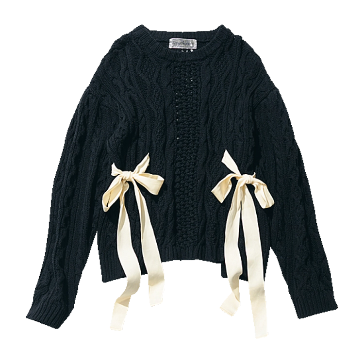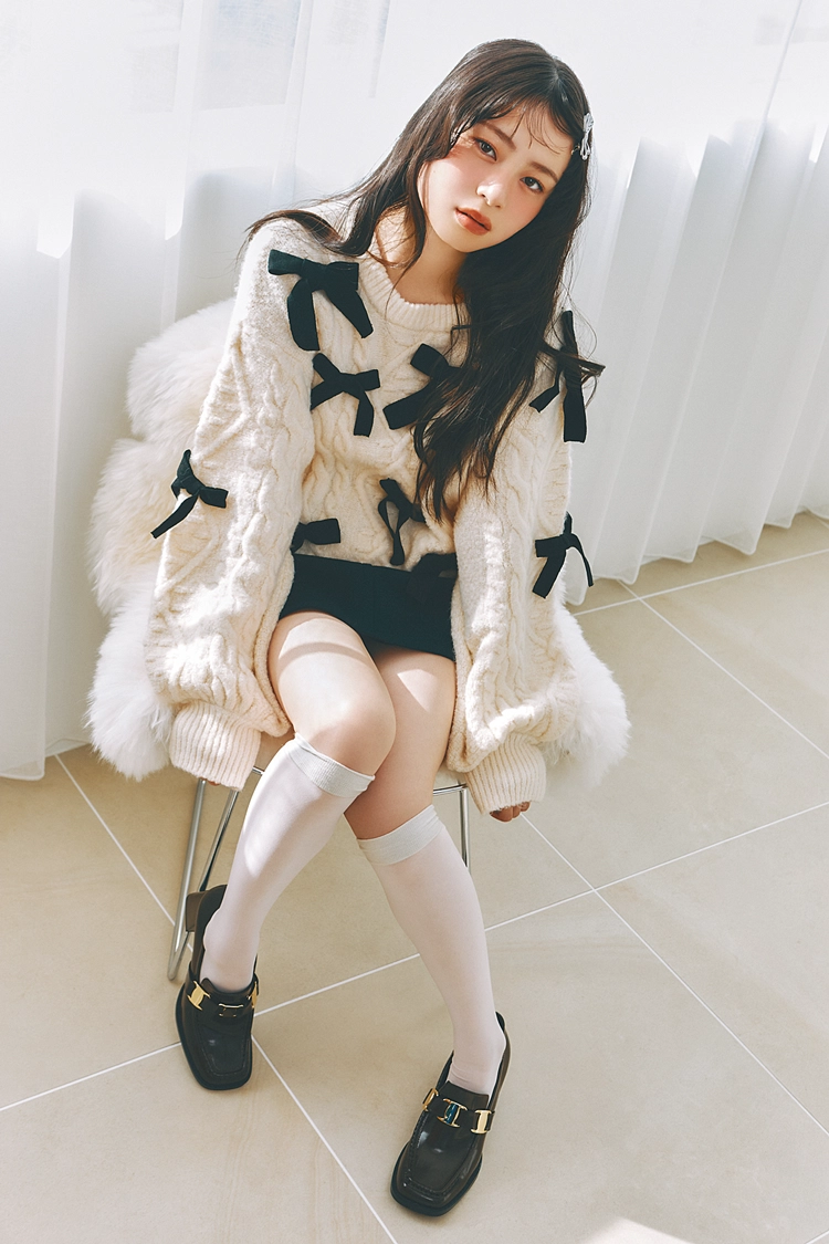 バレエコアの代表格、リボンモチーフはもはや定番。ニット自体にリボンがついていれば、向かうところ敵なし♡