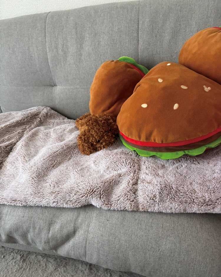 「おうちのソファは、寝転がったり、動画を見たり、ゆっくりくつろげるのがお気に入りポイント!」
