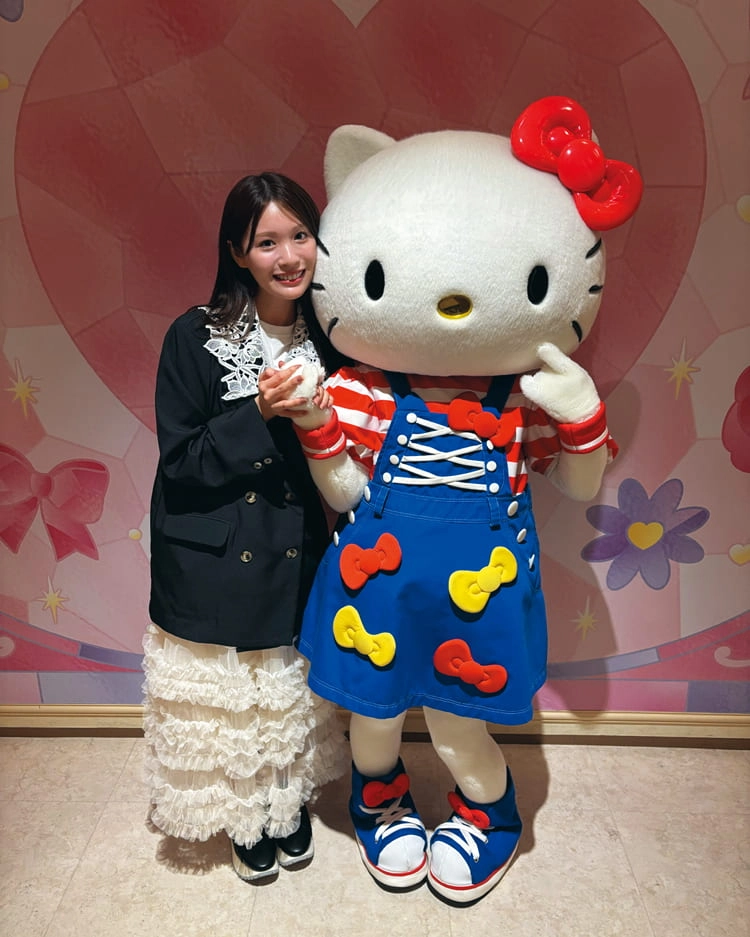 「キティちゃんに会えた瞬間うれしすぎて、顔が超ニヤけてしまった(笑)。とにかく可愛すぎたし、サービス精神旺盛! 一緒に写真撮ってくれたけど、ずっと手握ってた」