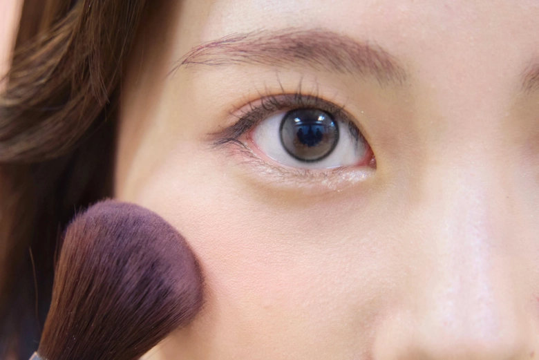 5. ポイントカラーをふんわり重ね、血色感のある立体的な目元を完成させます。