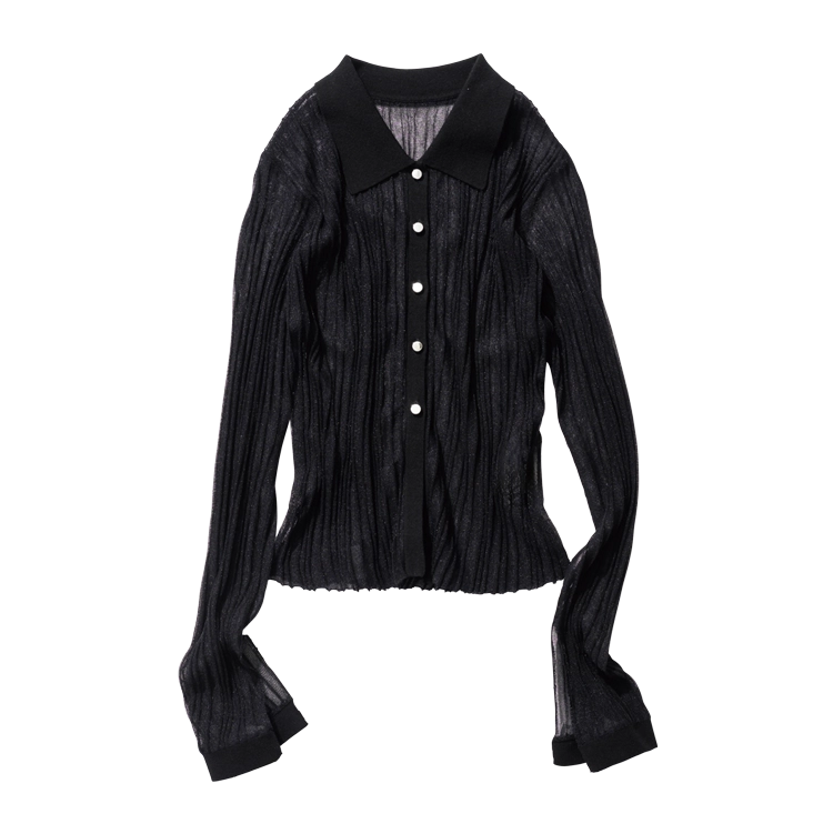 えりつきだからカジュアルなボトムとあわせても、上品にシフトできる。透け素材越しに見える肌でメンズのフェチ心をくすぐって。