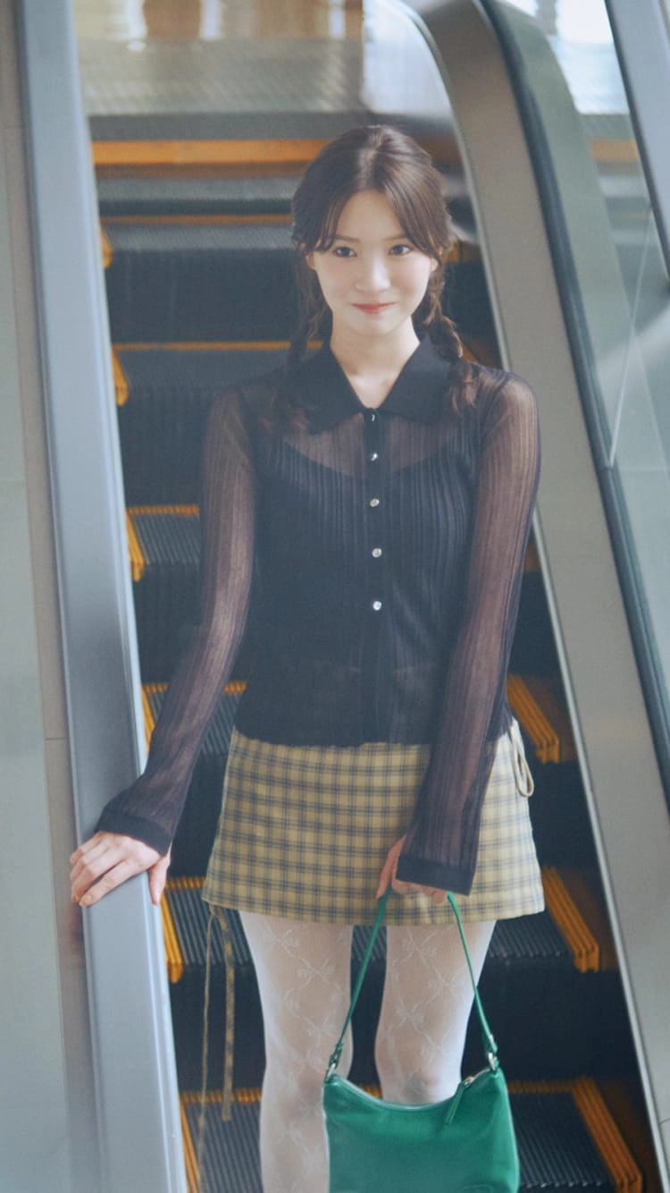透け感のある黒トップスに、チェックのミニスカートをあわせた小悪魔ガーリーなスタイル。肌見せのバランスが絶妙で、思わず目を引くおしゃれ感♡
