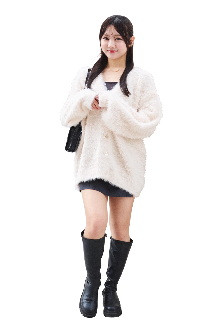 冬モテの王道・ふわもこ素材は、み〜んなカーディガンで取り入れてました! ゆるっと着崩して、肌見せするのがいいんだって♡