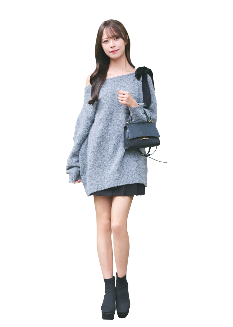 韓国で約2,000円で買ったプリーツスカートとあわせてガーリー要素をプラス。肩と脚をW見せする本気コーデ♡」