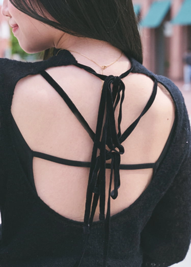 正面は上品だけど、後ろ姿は超セクシー♡ 気になる男のコを意識させたい日にぴったりな小悪魔コーデ」