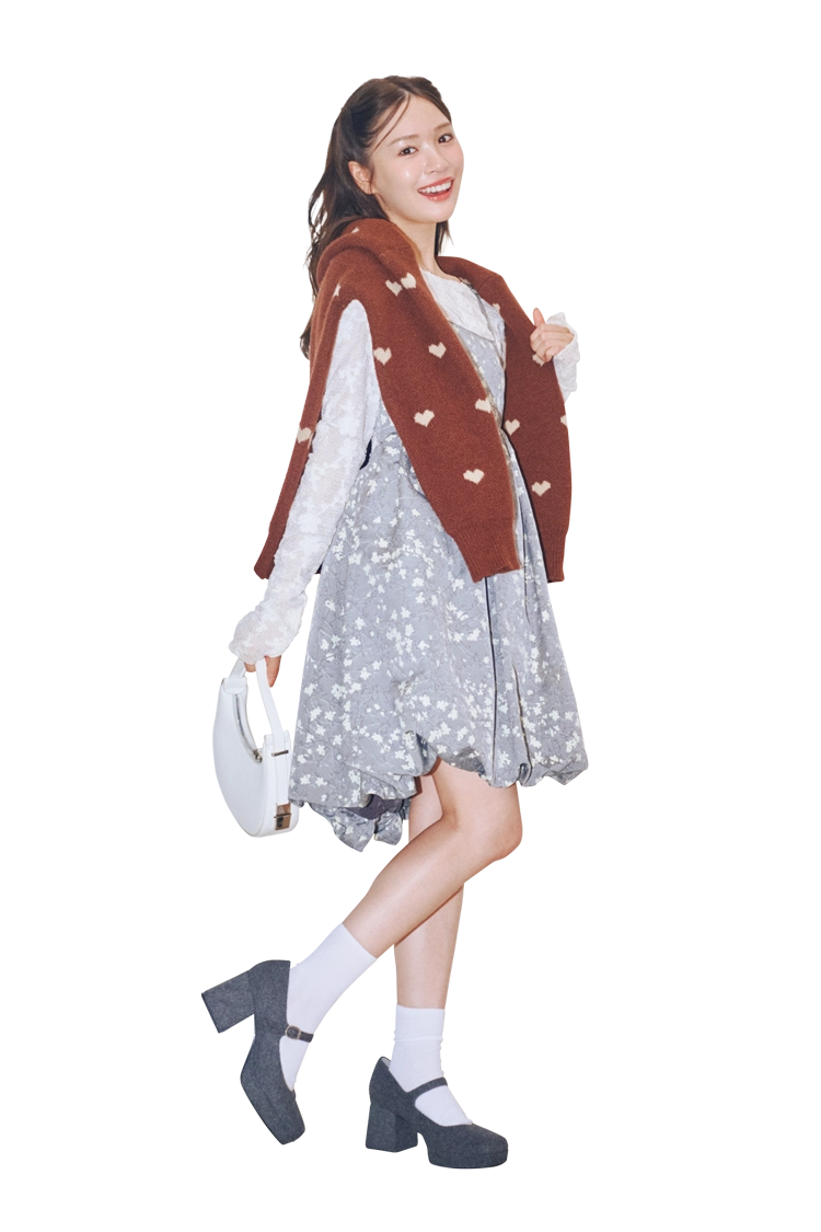 レース×花柄ワンピの甘々コンビには、ローファー&グレータイツをあわせてレディライクに仕上げて。鎖骨をチラ見せして、華奢見えをアピールできるよ♡