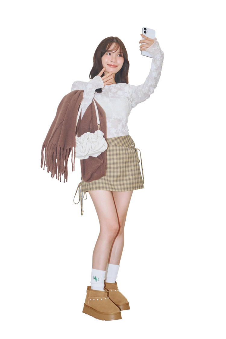 撮影/藤原宏(Pygmy Company・モデル)、林真奈(静物)スタイリング/仲田千咲 ヘア&メイク/山田マキ(Lila)モデル/中川紅葉(本誌専属)撮影協力/実践女子大学