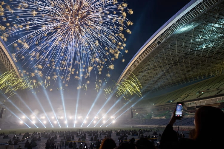 終演後もなお、観客からの絶え間ない歓声と拍手が鳴り続くなか、世界初の音楽花火ショー『Bruno Mars Fireworks Show 2025』は幕を閉じました。