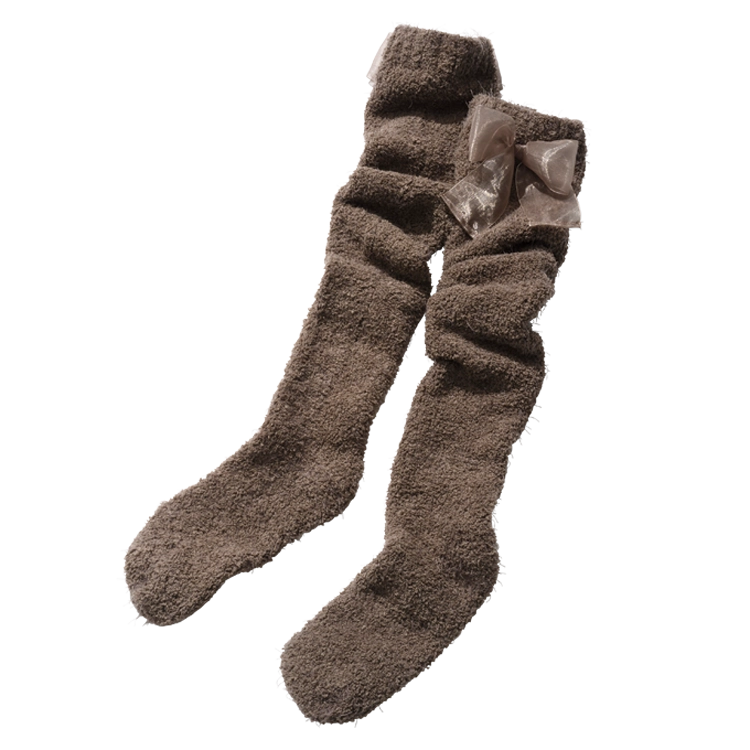 大きなオーガンジーリボンがアイキャッチ。ふわもこ素材で末端まで可愛く冷え対策。
