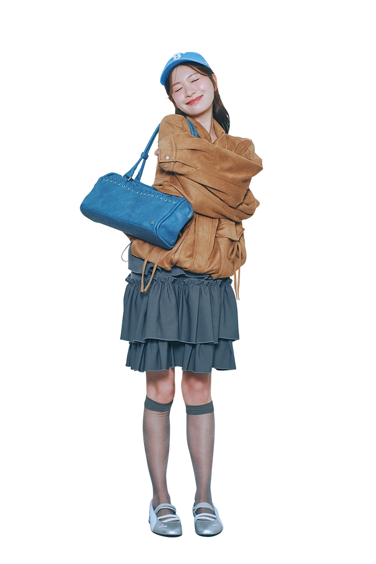 ダボッと着用できるBIGシルエットのブルゾンジャケット。とことんガーリーなアイテムの上に羽織ってもスエード素材だからこなれた印象にメイクできる!