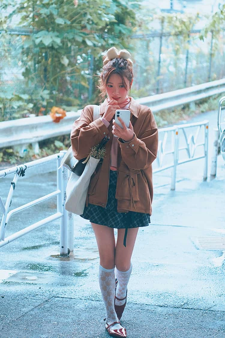 秋冬トレンドのチェックスカートで女の子らしさ満点♡ シュシュやレースタイツなど小物まで抜かりなく。