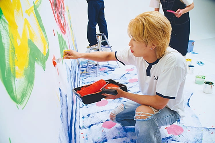 全部がお気に入りなんですけど、僕が描いた床の青は大海原を表していて、WATWINGの今の旅路とこれからを意味しています。僕らをとりまくすべての人への愛もこもってます♡」