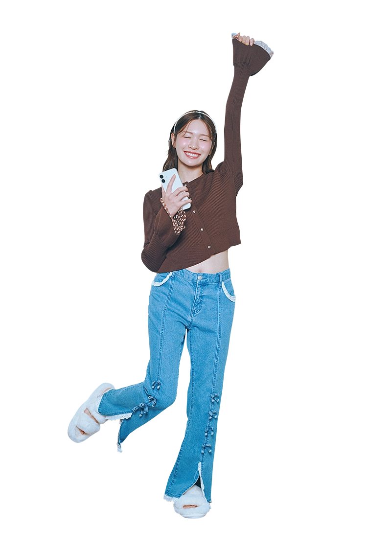シンプルで万人ウケ間違いなしのスタイル。パンツのリボンやフリル、パーツなど小物でガーリーさをプラス!