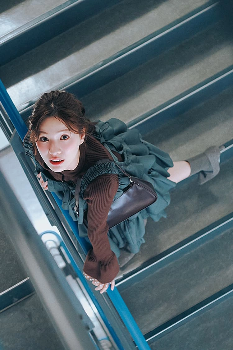 暗めのトーンで統一して大人っぽく上品に。フリルたっぷりで可愛さを加速させて!