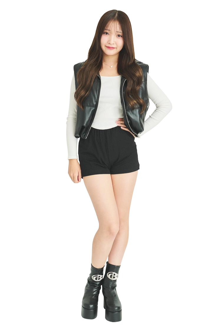 「なかのトップスと足元をチェンジして、ビスチエをプラス。白やベージュのアイテムを増やすことで、全体的にやわらかいトーンに♡ ギャル度の高いマイクロミニボトムは、ロングブーツ×レッグウォーマーで、脚見せの範囲を軽減!」