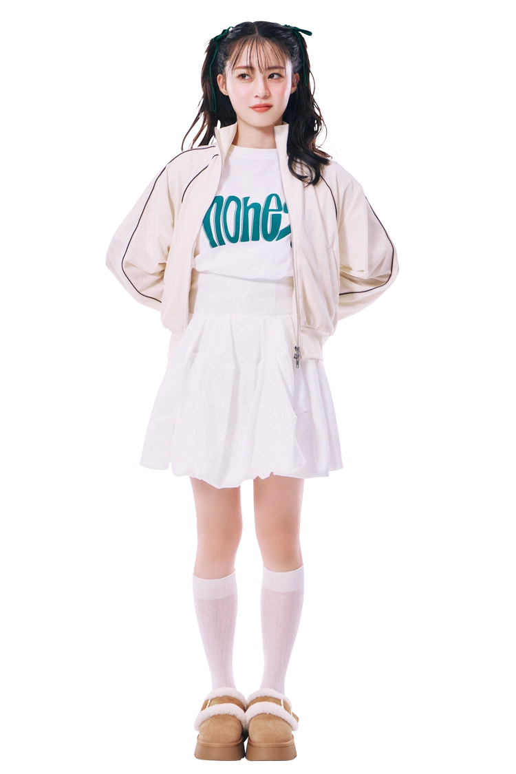 ワントーンの間のびを防ぐ異素材あわせが上級テク。ライブTにあわせたオール白がガーリーさんにぴったり。