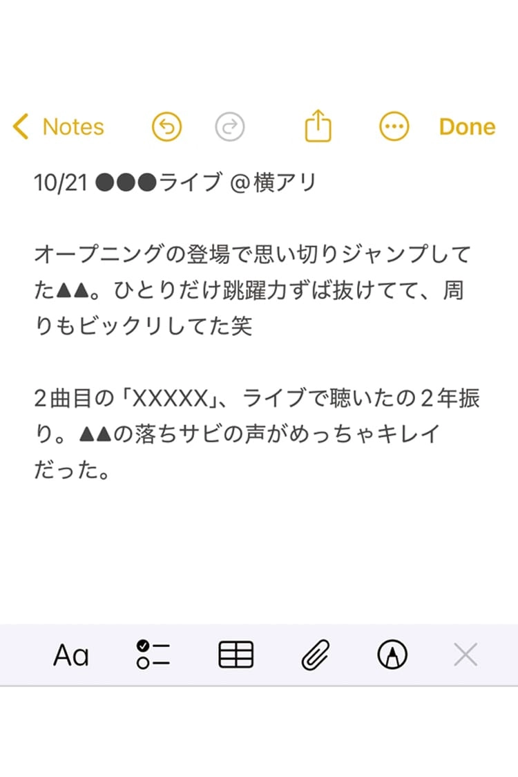 そんな気持ちから、ライブ終演後にスマホで即メモを取るコが多いみたい。