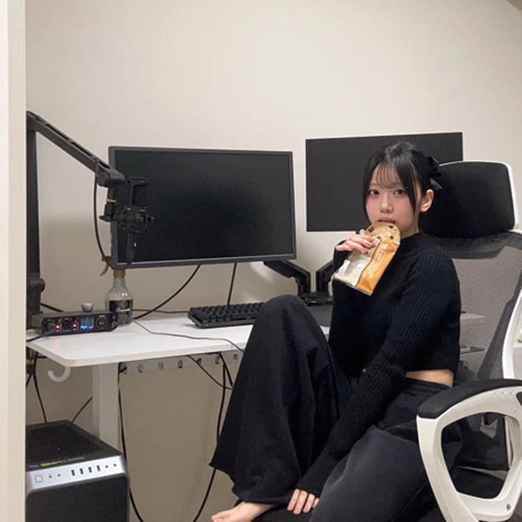「ごはんのときも、勉強のときも、ゲームのときも、基本ずっとここにいます(笑)。配信を聞きながら、なにか作業をしたいのでPCは2画面がマスト!