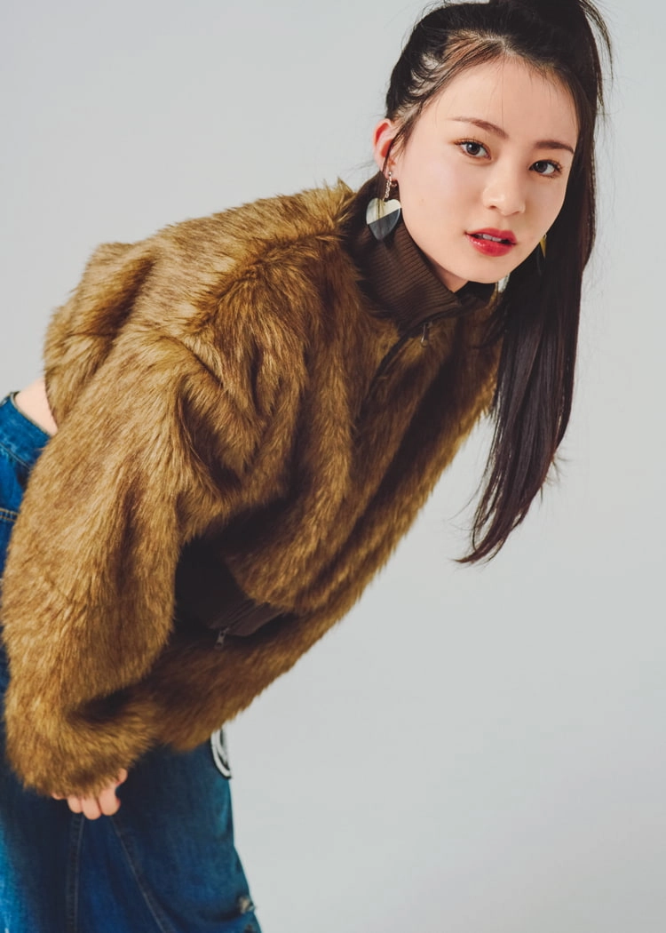 2025年3月号の今こそ着たい♡ らぶなレトロ服大全では、もこもこファーにデニムをあわせた90年代風コーデで登場しました。ギャルチックな雰囲気もお似あいです♡
