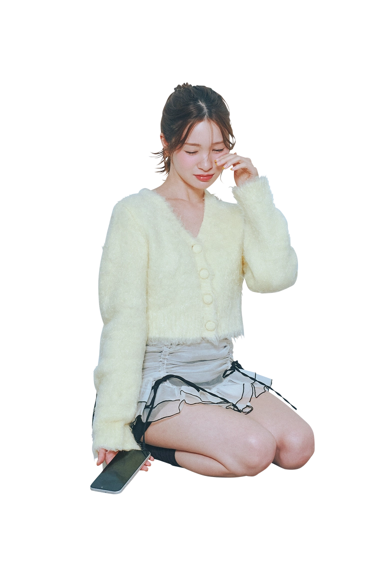 ニットカーでとショートパンツをあわせれば、王道あざとコーデの完成。ふわもこアイテムと肌見せの二刀流で彼の視線をゲットして♡