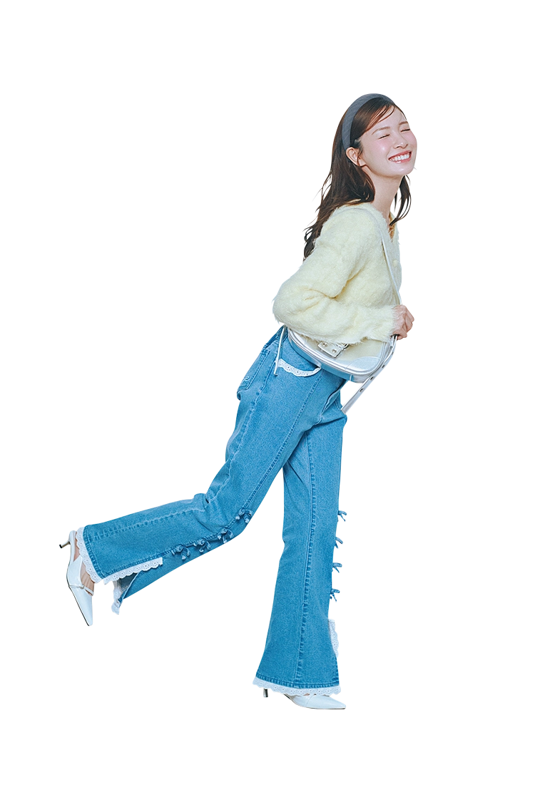 カジュアルだけど、どこかガーリーな要素も欲しい...ってコ必見!そこで今回は、中川紅葉とともに、リボンやレースでとことん甘く盛れる「フレアーデニムパンツ」が主役の着回しコーデをご紹介します♡ スタイルアップも可愛さも欲張りたいコは、ぜひチェックしてね。
