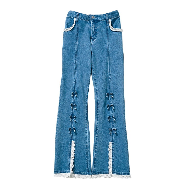 ガーリー好き必見♡ リボン&レースが可愛い【フレアーデニムパンツ】着回し術4選