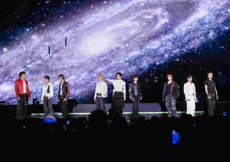 最初に登場したのは、赤と白の車に乗ってアリーナの両端から現れたMINGYUとJUN。2人に続いてほかのメンバーも次々と登場し、開始早々会場の歓声が鳴りやみません。