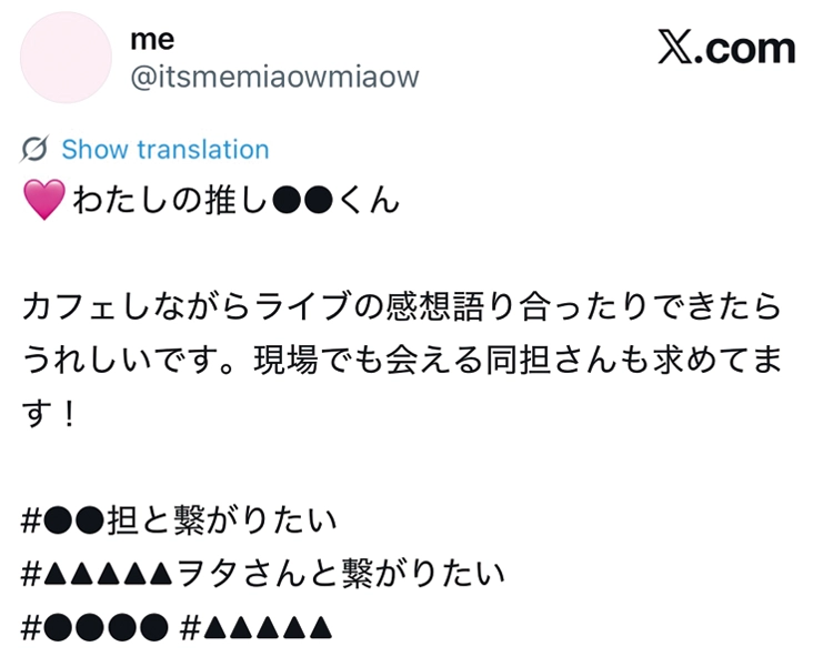 「推しへの熱い気持ちをわかちあえる友だちとリアルで出会うのは難しい。なのでXで同担さんと仲よくなって輪を広げています」Kさん(大学2年)