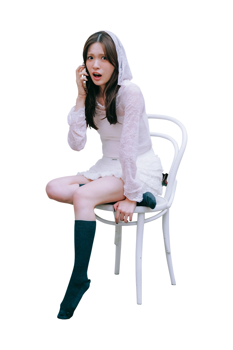 レースのフードをかぶって顔まわりのビジュを強化♡