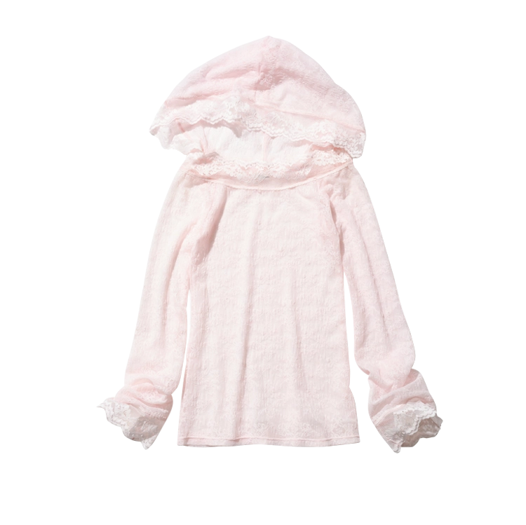 ロマンティックなピンクで清楚感もアピ。定番のレーストップスも、Kスポなフーディデザインなら新鮮。ドキッとさせる透けで本命カレを虜に♡