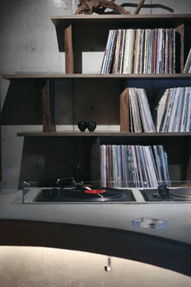 無機質なインテリア空間でレコードが聴けるミュージックバー