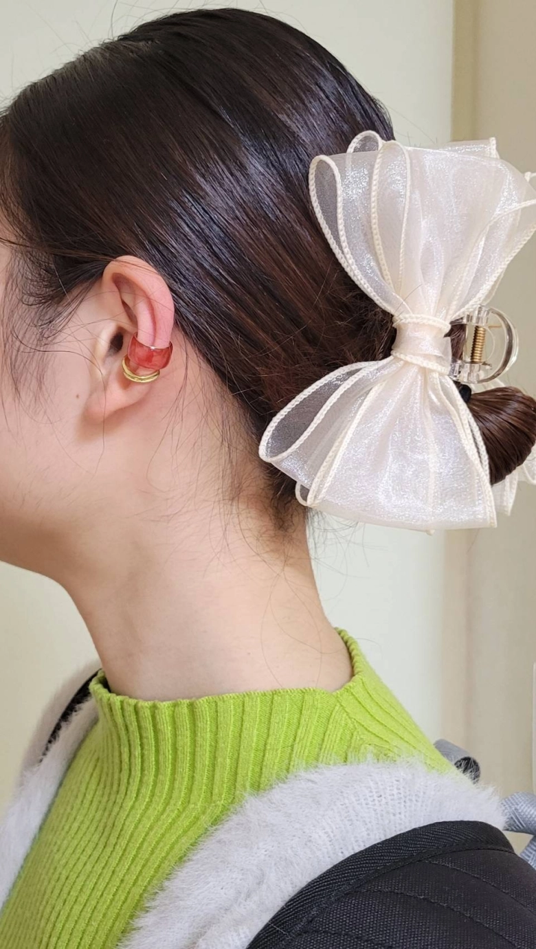 全体的に微妙ですが、イヤーカフとヘアクリップで誤魔化しました。