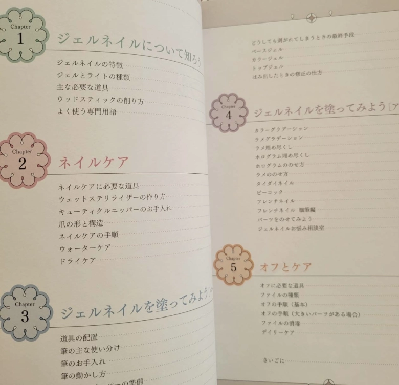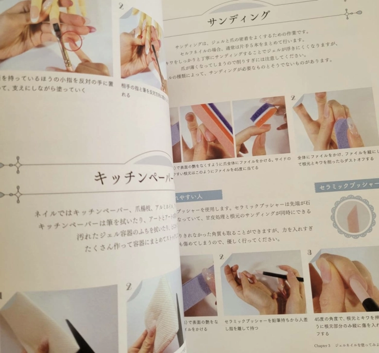 こちらの本は、まず、ジェルネイルに必要な道具を教えてくれるので、取り掛かりやすいです。