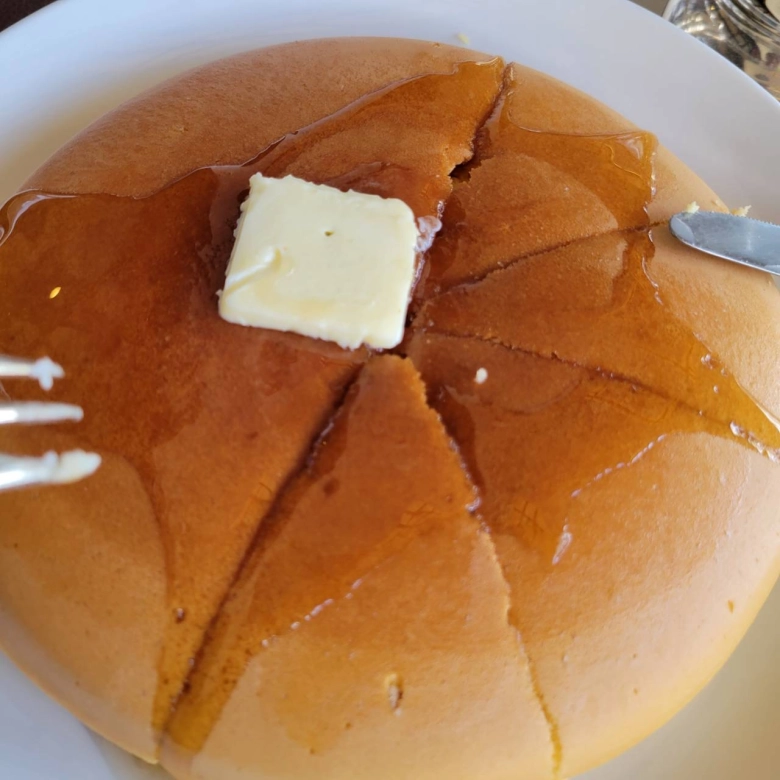 シロップやバターが生地まで浸透していくので、生地全体がそれらに浸されて口の中でずっと美味しかったです。