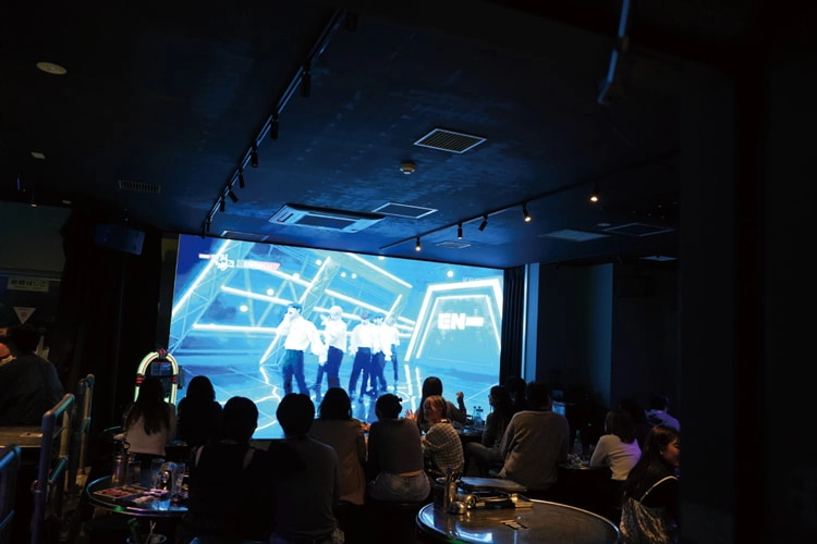 さらに2階ではチャミスルを注文すると大画面に好きなK-POPのMVを流せるというオタにうれしいシステムあり。推し活にぜひ♡