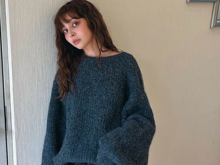 「私が手がけるブランドLepus FaëのBIGニットはこの冬たくさん着たいお気に入り。ミニワンピとしても使える絶妙な丈なんです。前後どちらでも着られるデザインにしたところがこだわり!」