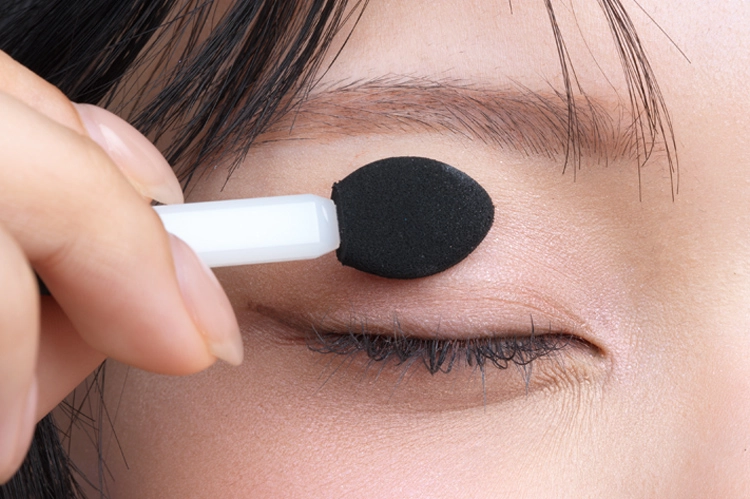 さらに、メイクだけが浮かないよう、青みに加えてコーラル寄りのカラーを目元の小範囲に混ぜてバランスを取って。