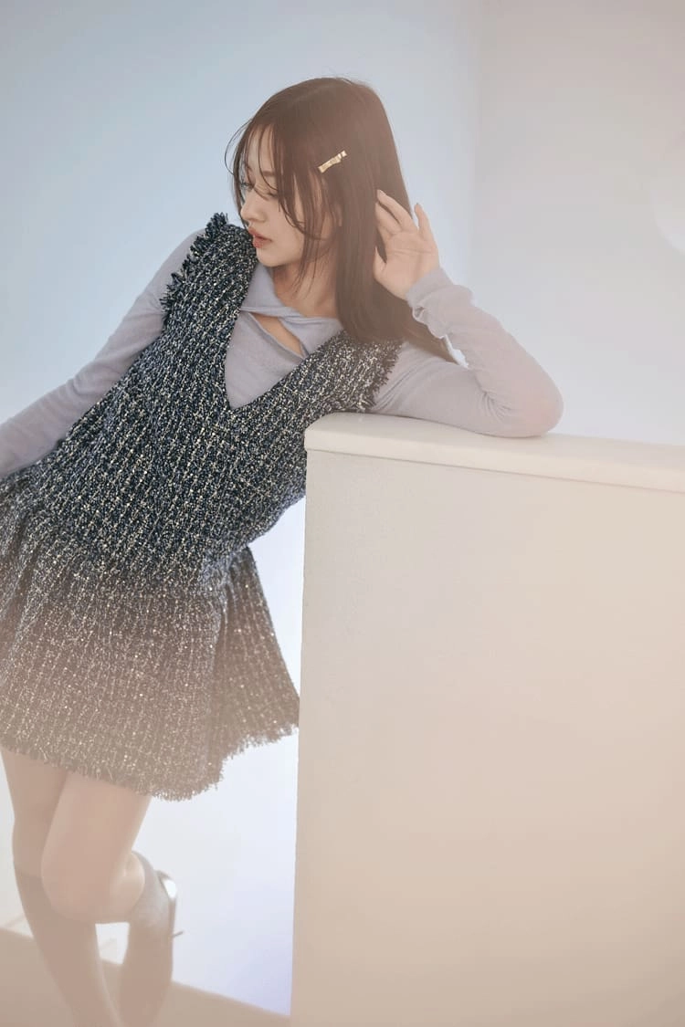 ツイードで上品、だけどキラキラのラメがミーハー心を満たしてくれるジャンスカは、レイヤードが楽しめるのもうれしい。ほどよくシアーな質感のトップスをINしてコーデの完成度をUP!