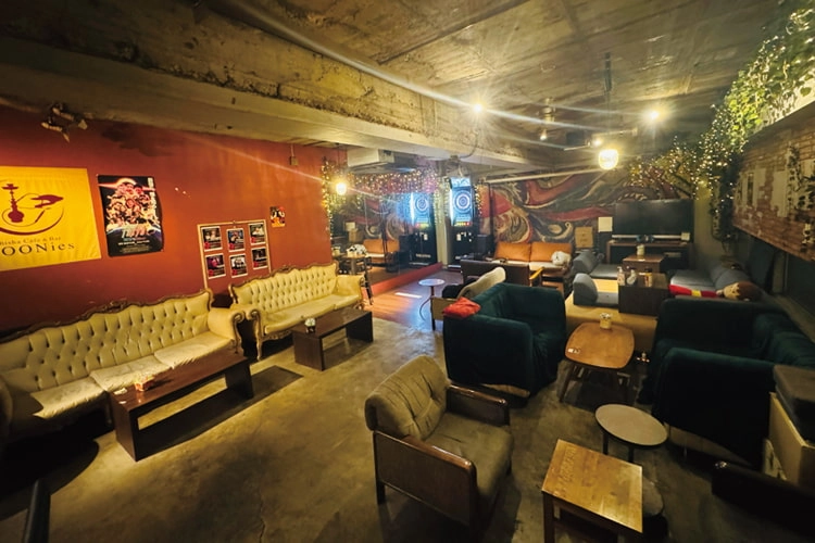 ビルを上がった3階でひっそりと営むおしゃれなシーシャバー。映画『花束みたいな恋をした』のロケ地としても知られ、広々とした店内と大きなソファはチル活にぴったり。