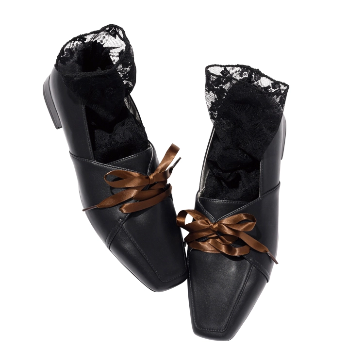 色気のある黒レースにおじ靴でバランスを。