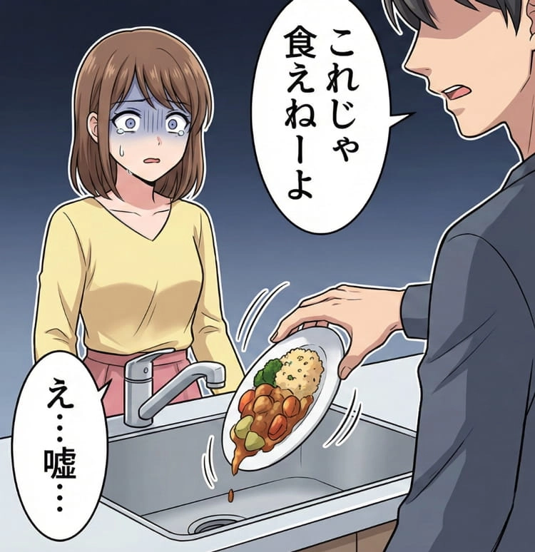 そしてあろうことか、「これじゃ食べられない」と吐き捨て、私が何時間もかけて作った手料理を、そのまま冷酷にキッチンの流し台へと捨て始めました。