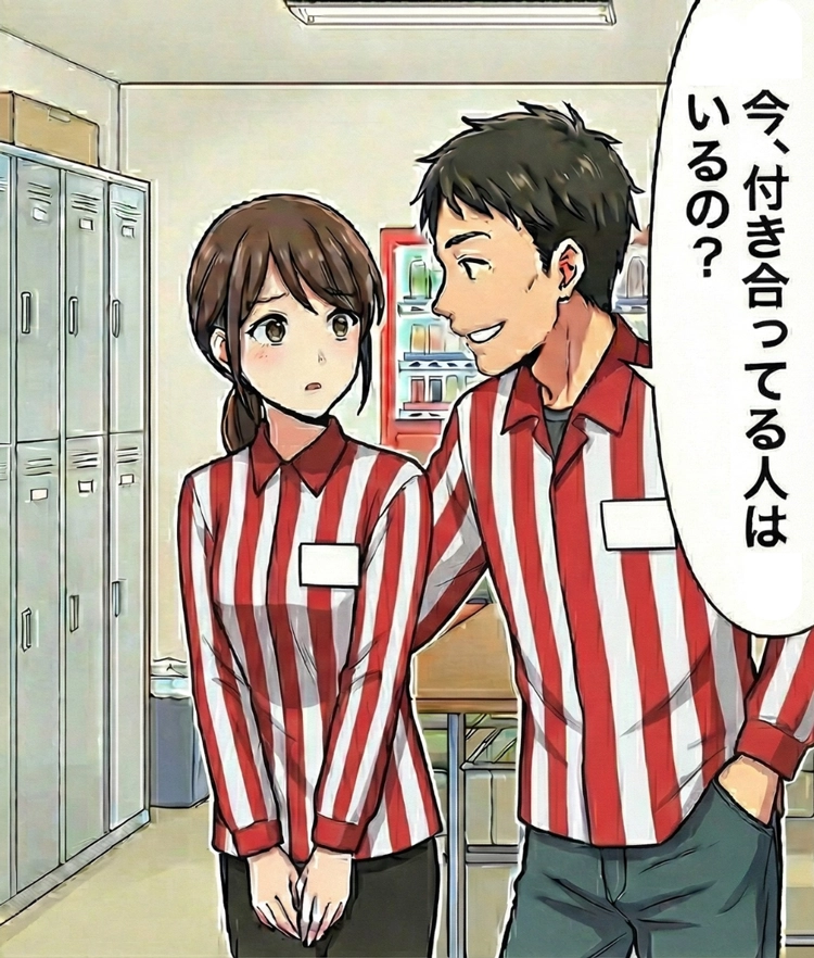 ある日のシフト中、休憩室で偶然その先輩と2人きりになるタイミングがありました。和やかな雰囲気で雑談をしていると、先輩から突然「今、付きあっている人はいるの?」と尋ねられました。