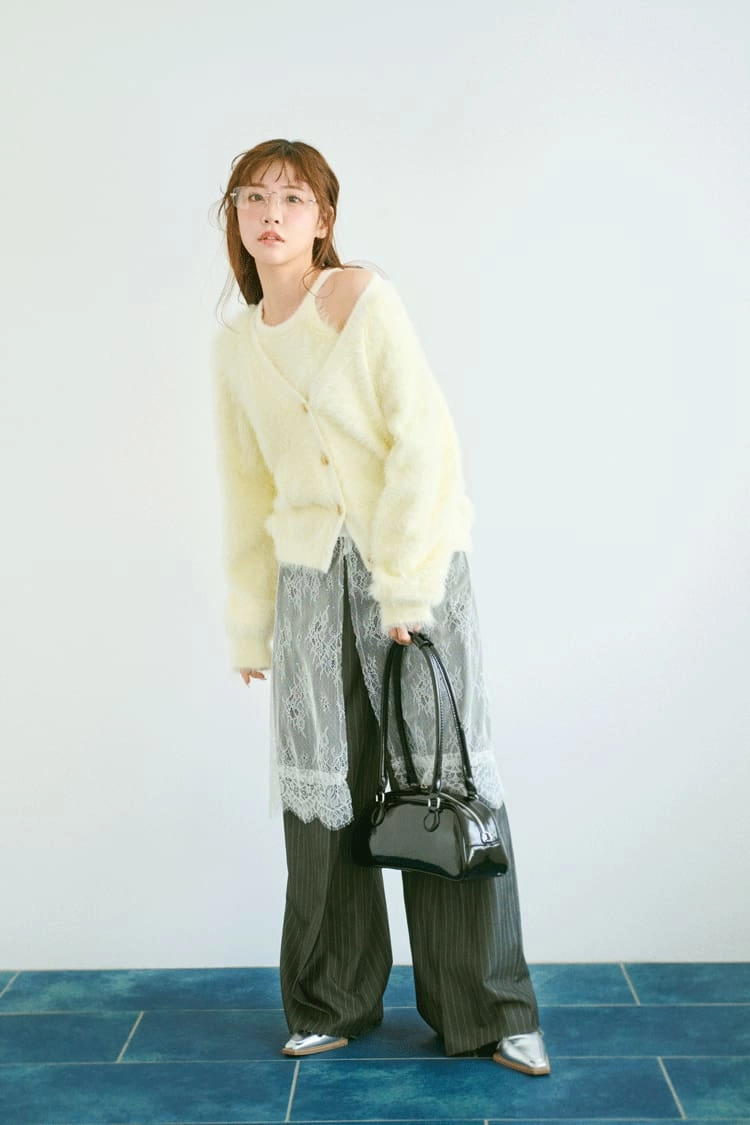 モコモコなニットに白レース、モテの王道アイテムを使いつつ、着こなしは攻めるのがしゃれガールの鉄則。
