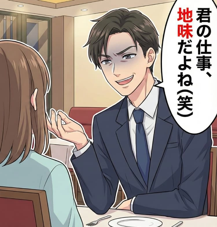食事も終盤に差し掛かった頃、彼の態度はさらにエスカレート。自分の優秀さをアピールするだけでなく、「それに比べて君は地味な仕事で大変そうだな」などと、私を露骨に見下すような発言を繰り返すようになったのです。