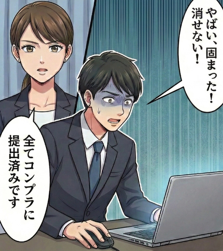 マウスカーソルも動かず、言い逃れのできない恥ずかしい証拠メッセージが、無情にも全社員の画面に晒され続けるという地獄のような時間が流れました。2人は画面の向こうで、ただただ呆然とするしかありませんでした。