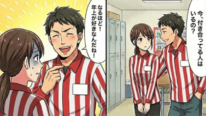 そして迎えた翌日の夕方、先輩の彼氏が本当にバイト先まで迎えにやって来ました。やさしそうな雰囲気を纏った素敵な男性で、先輩も嬉しそうに駆け寄っていきました。