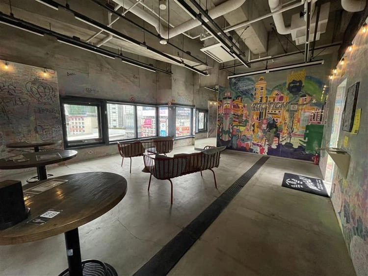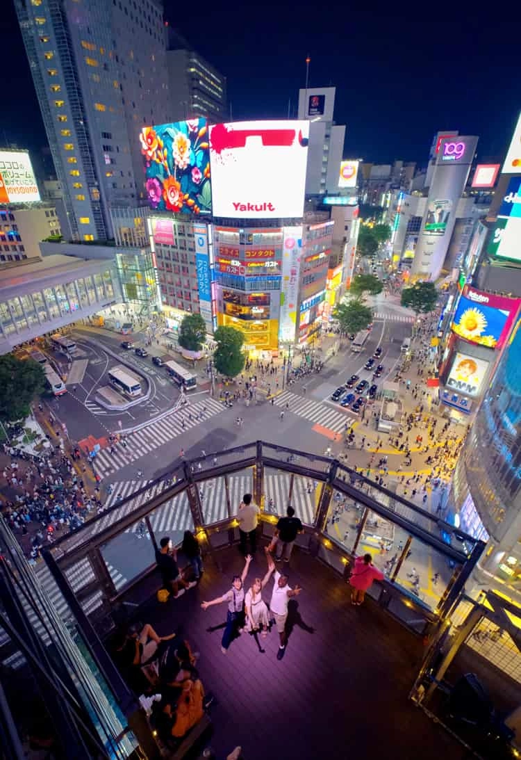 雨天時でも、雨に濡れることなく渋谷スクランブル交差点を眼下に渋谷の風景を見ることができる室内ラウンジ。