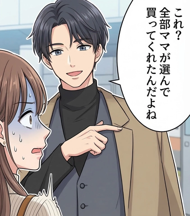 さらに「俺、自分では一度も服を買ったことがなくて、全部ママの趣味なんだ」とうれしそうに語り始めました。あまりに予想外な言葉の連続に、私の頭のなかは真っ白に。